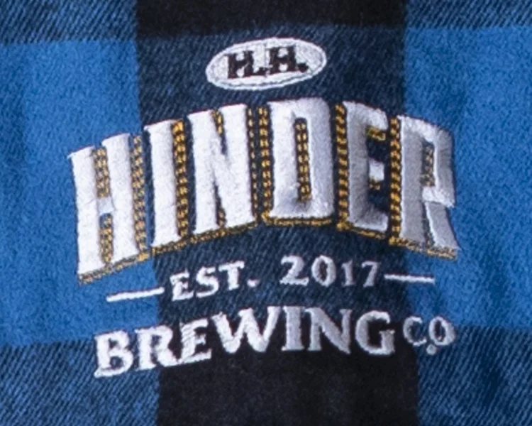 H.H. HINDER Brewing Co. logo embroidered on left chest.
