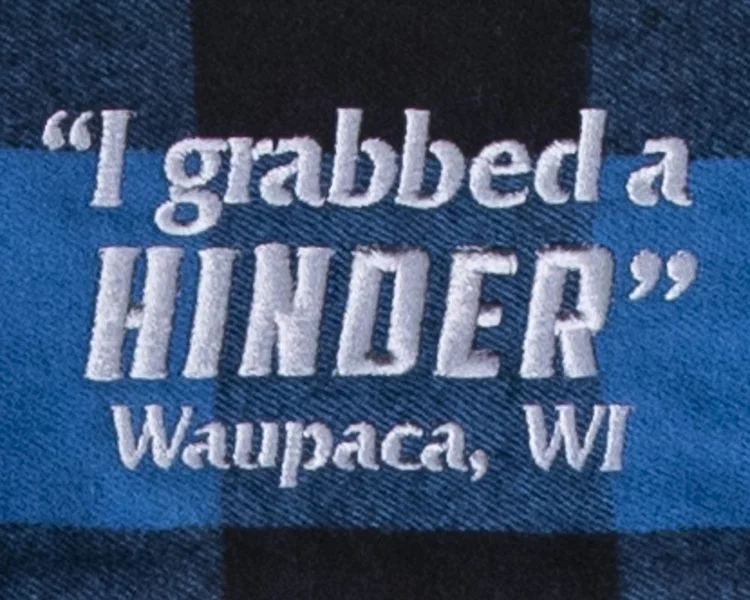 “I grabbed a HINDER – Waupaca, WI” embroidered on back